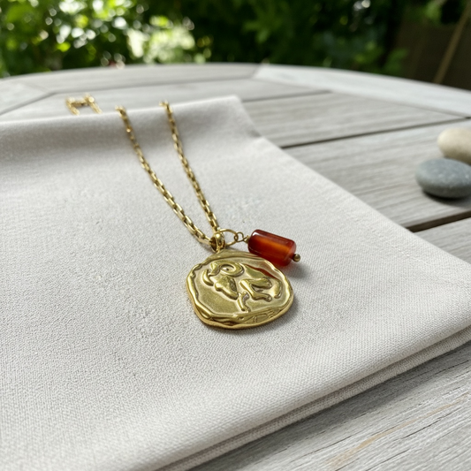 Sternzeichenkette Widder mit Karneol – 18K vergoldeter Edelstahl