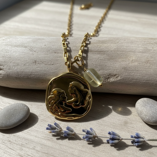 Sternzeichenkette Zwillinge mit Anhänger mit Citrin – 18K vergoldeter Edelstahl