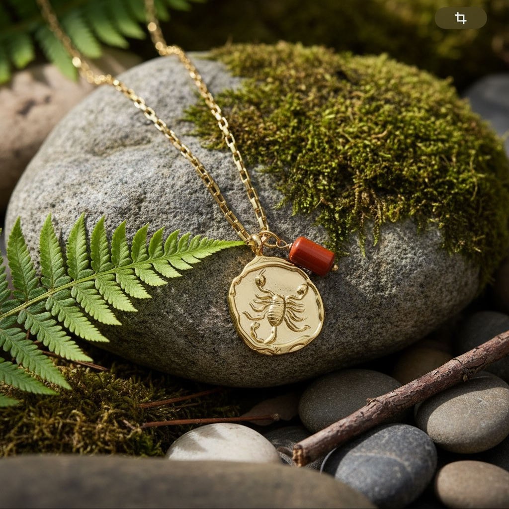 ✨ Sternzeichenkette Skorpion mit Anhänger aus rotem Jaspis – 18K vergoldeter Edelstahl ✨